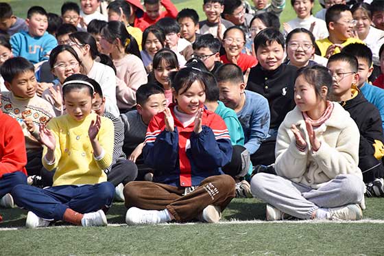 然后,潘老师精心设计了“鲤鱼跃龙门”活动,将各班学生分成两列纵队,进行快速传球,直至每一位同学都参与其中。活动结束后,潘老师引导学生们积极思考,畅所欲言。面对学生们各种各样的回答,潘老师都及时给予了正面回应与肯定,操场上同学们其乐融融,充满欢声笑语。