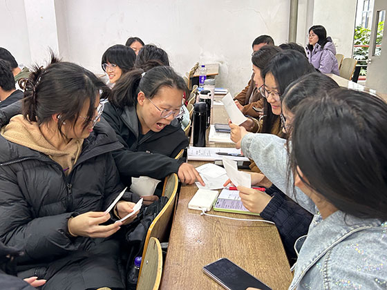 活动伊始,邵执玉老师以“压力清单”为切入点,引导每位同学拿出三张便签,分别写下自己当前面临的学业、生活、未来规划等方面的三个压力烦恼。同学们认真思索、坦诚书写,将内心的困惑与焦虑化为文字。随后,所有便签被集中收集、打乱顺序,再随机分发给全班同学。大家以小组为单位,对手中的“压力便签”进行分类整理,通过热烈讨论梳理各类压力的共性与差异,在交流中发现“原来我不是独自面对”,有效缓解了孤独感与焦虑情绪。