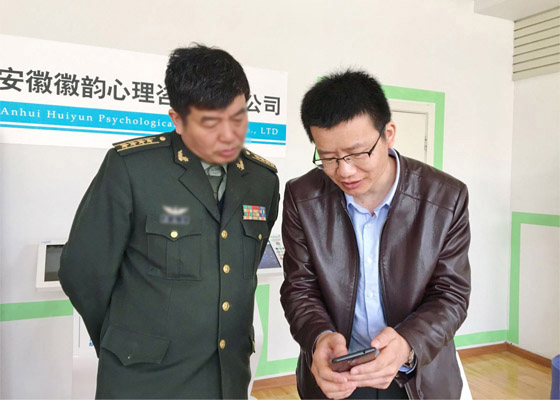 2018年3月14日上午,中国人民解放军某院校领导莅临徽韵心理总部参观。徽韵心理总经理孙超全现场解说和演示了部分产品,其中徽韵自主研发的智能呐喊宣泄仪(入选了第四批《合肥市两创产品目录》)、心理健康宣教平台、心理沙盘管理系统、心理训练仪得到领导的青睐,引起了重点关注。